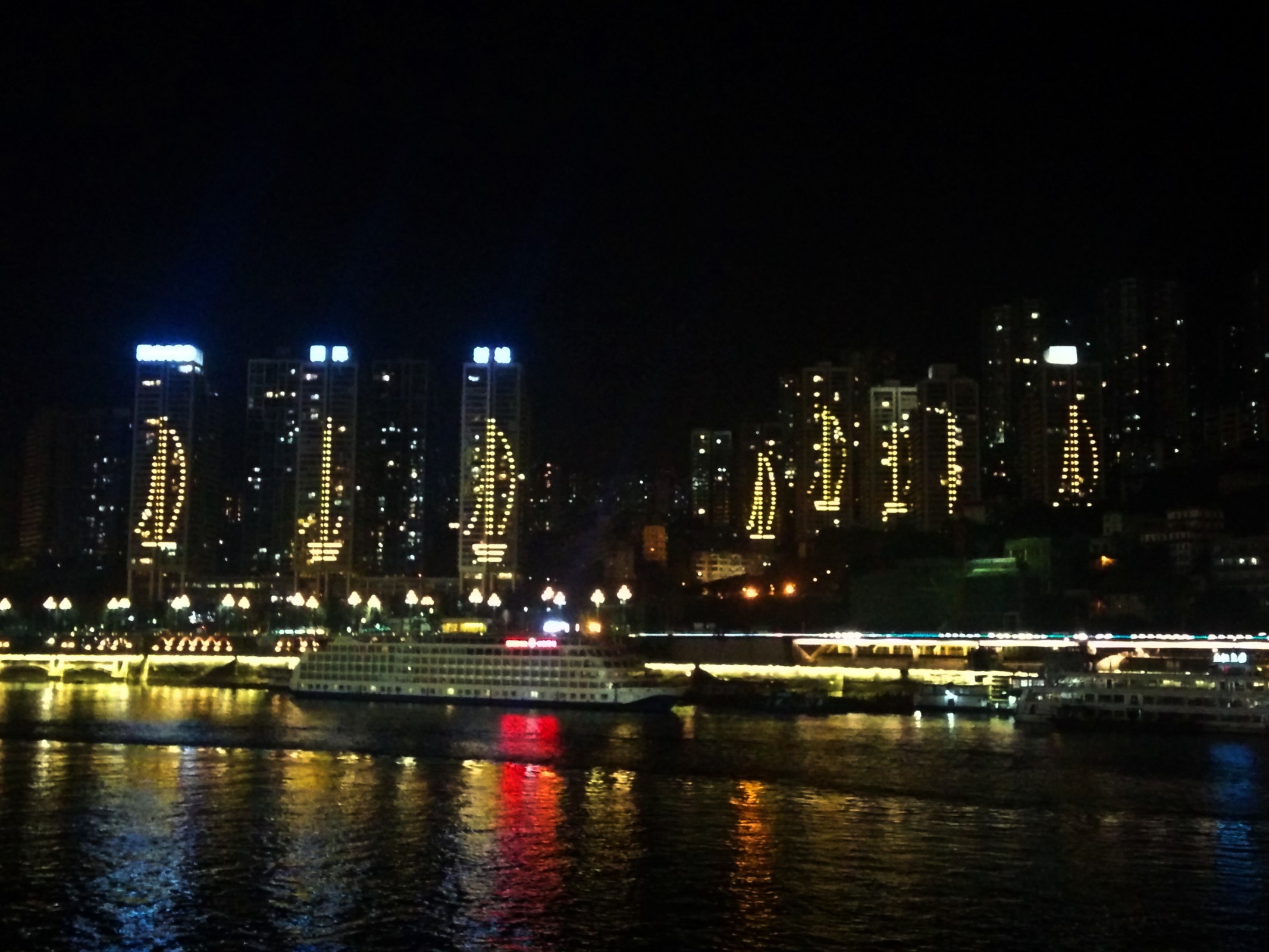 Chongqing is the hot pot capital of China and every eatery there sells their own hot sauce. For breakfast, we went to a local spot and ate Hot Dry Noodles, a specialty of the area. While some men were wiping the sweat off of their foreheads, the women seemed unphased by the spicy red sauce. We thought the breakfast food was delicious but probably cannot eat it every morning. The night scenery along the Yangtze river is the most beautiful. There are many high rises with spectacular light shows. One building along the river spelled Merry Christmas with Santa’s sleigh being pulled up the building.