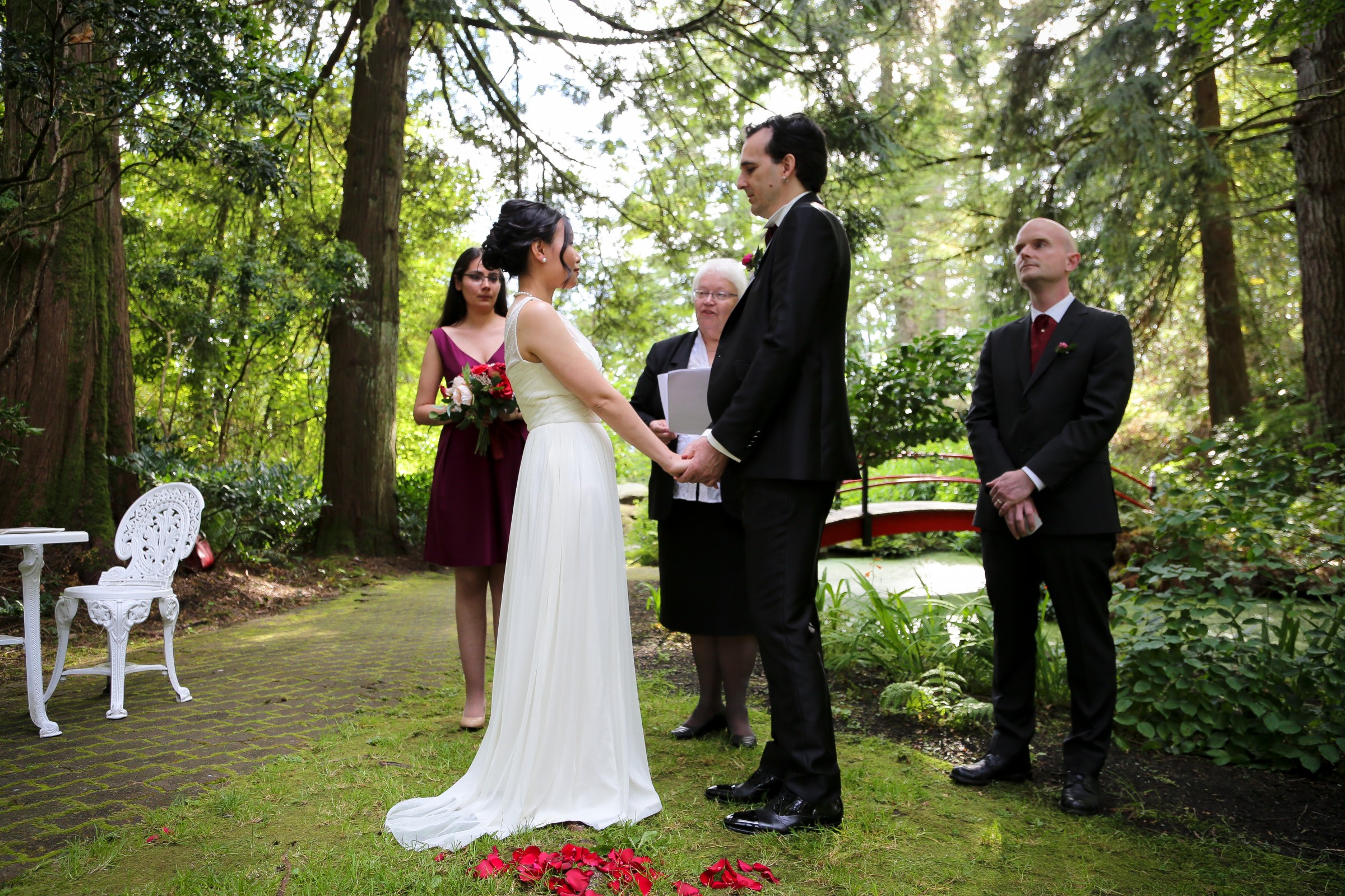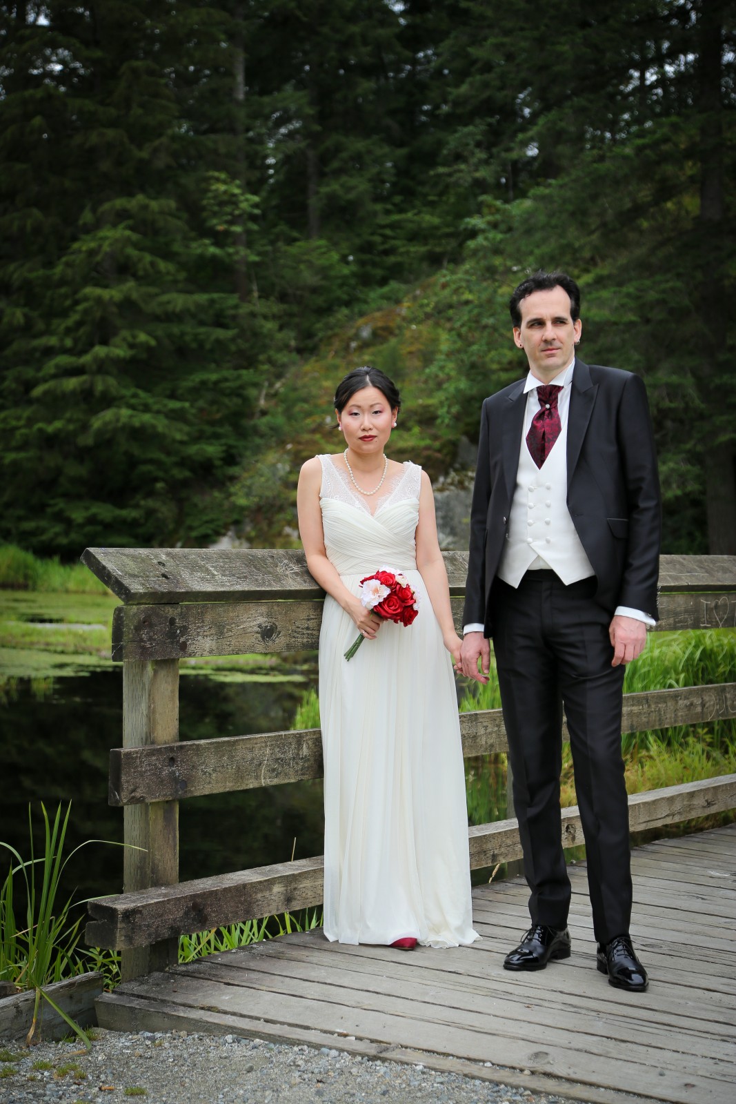 We had a beautiful outdoor wedding ceremony under the trees at Minnekhada Lodge on July 22, 2016. It was one of those rare Vancouver days where the clouds parted and the sun was shining. Our walk down the aisle was symbolic of our long journey of finding each other. My father walked with me from the West (symbolizing proximity to China) while Carlos’ mother walked with him from the East (symbolizing proximity to Cuba). We met in the middle, or Vancouver.